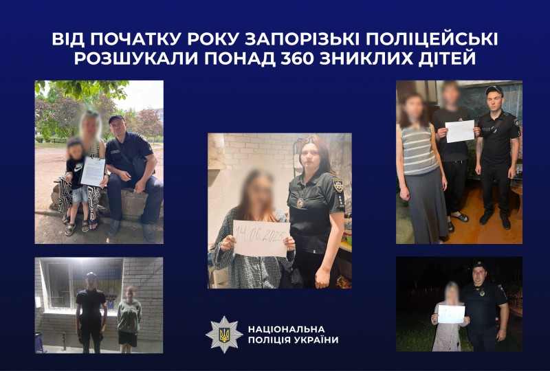 За 6 місяців поточного року працівники територіальних підрозділів поліції Запорізької області розшукали 365 дітей, що зникли безвісти на підконтрольній Україні території.