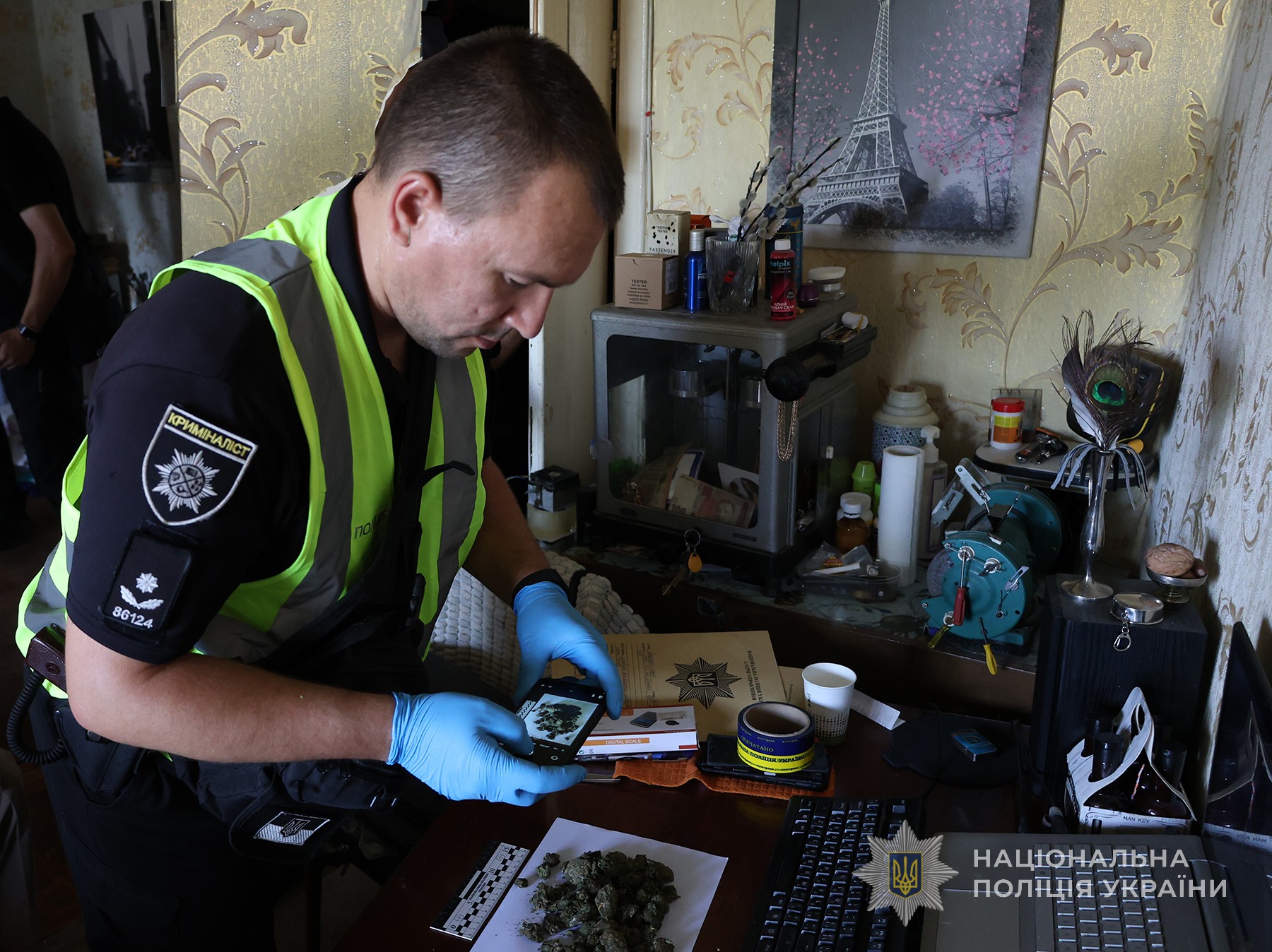 16 липня у домоволодінні фігуранта поліцейські за силової підтримки спецпризначенців КОРДу провели санкціонований обшук, під час якого виявили та вилучили близько 100 грамів шишок канабісу елітних сортів, понад 15 грамів сипучої речовини (попередньо – метамфетамін), пристрій для куріння та грошові кошти, ймовірно, здобуті злочинним шляхом.