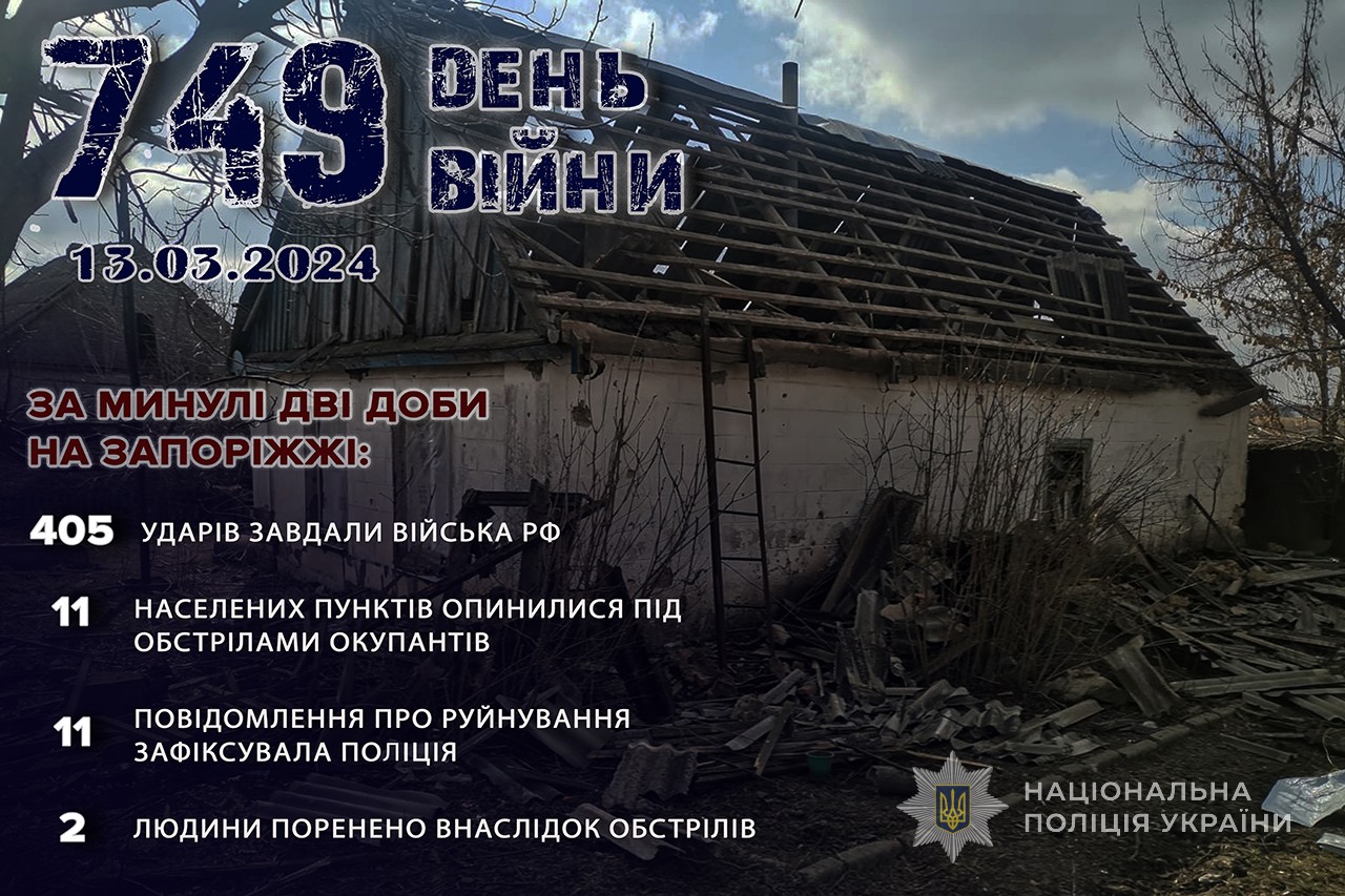 Минулої доби російські загарбники завдали 405 ударів по Гуляйполю, Залізничному, Чарівному, Новоданилівці, Малинівці, Малій Токмачці, Левадному, Роботиному, Новоандріївці та інших прифронтових населених пунктах.