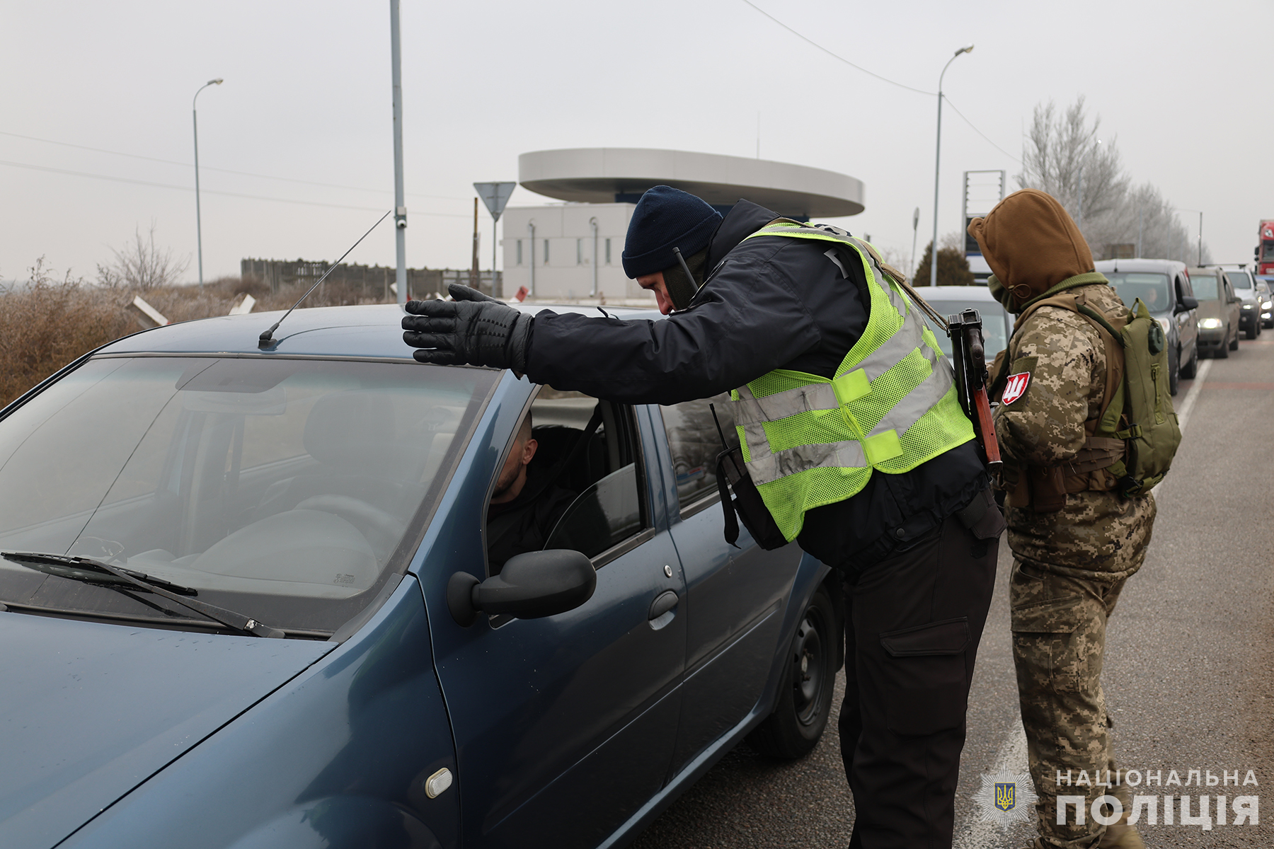 Щодня службу на блокпостах несуть понад 320 поліцейських, які працюють у тісній взаємодії з військовослужбовцями Збройних сил, Національної гвардії та Військової служби правопорядку.