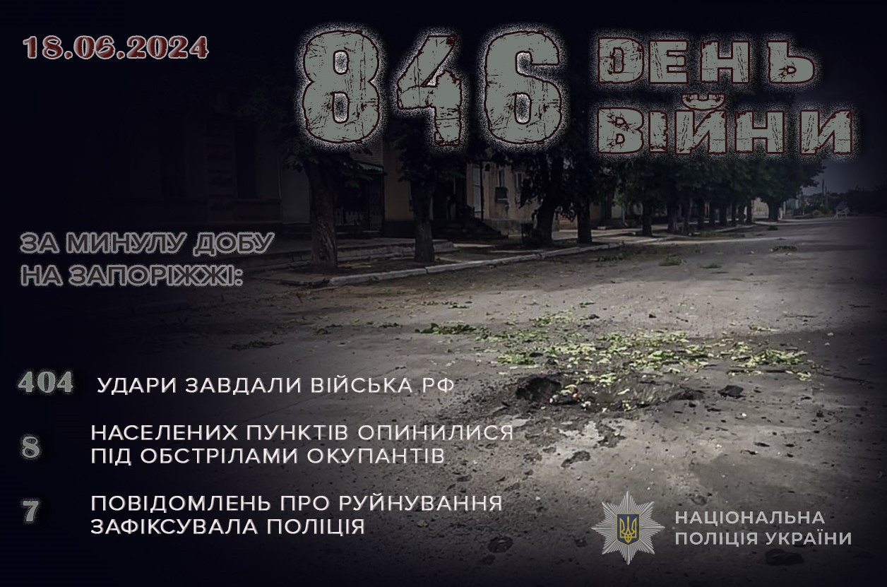17 червня росіяни завдали 404 удари по інфраструктурі регіону, застосували авіацію, безпілотники, реактивні системи залпового вогню, артилерію та інші види озброєння. ворог цілив по містах і селах Запорізького, Пологівського та Василівського районів. Учора обійшлося без жертв.