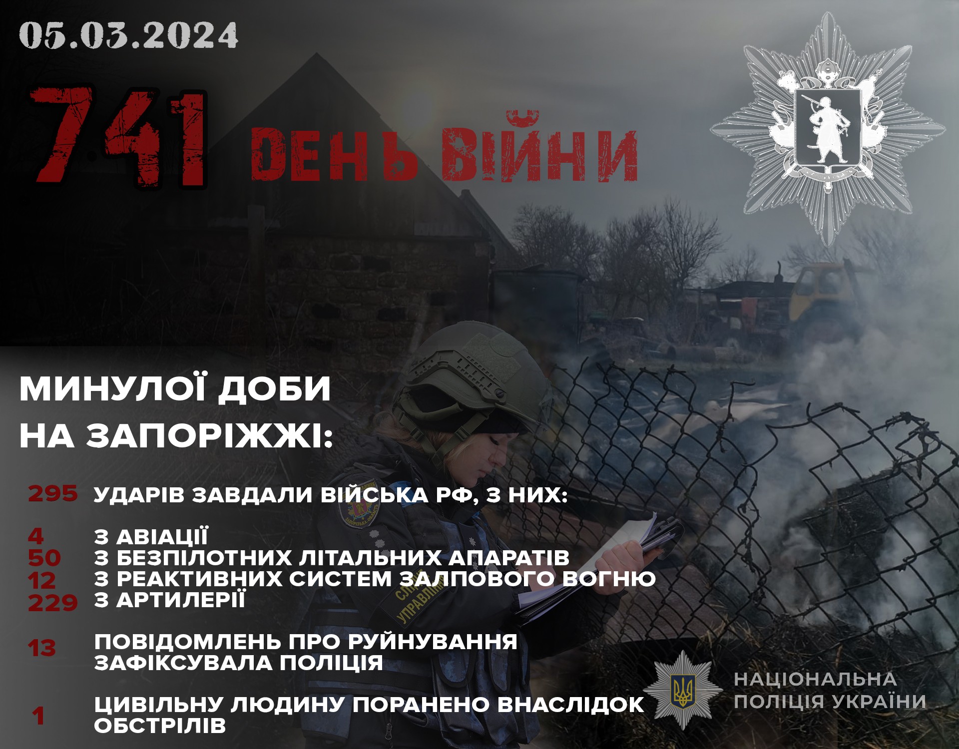 За добу росіяни здійснили 295 атак на мирні міста і села Запорізької області – наслідки влучань задокументовані поліцією