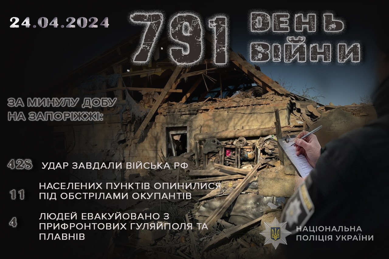 За добу військові рф здійснили 428 обстрілів по території Запорізької області – докази воєнних злочинів зібрала поліція