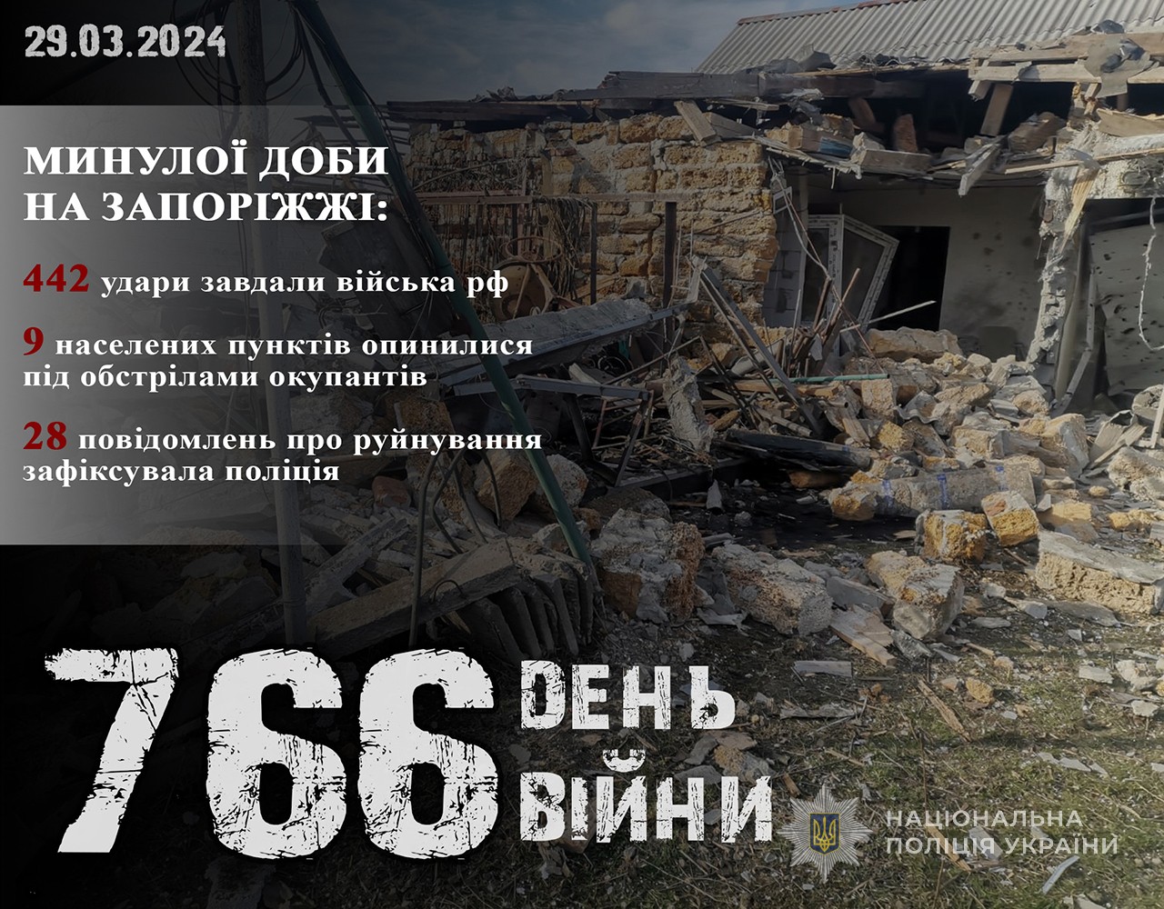 Нагадаємо: За добу поліцейські зафіксували наслідки 386 ворожих атак по 9 населених пунктах Запорізької області