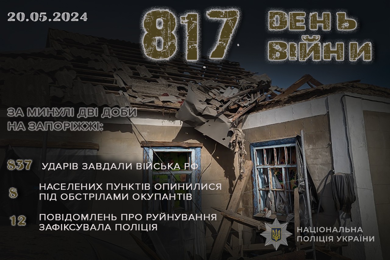 За дві доби окупанти завдали 837 ударів по 8 населених пунктах Запорізької області – наслідки влучань задокументували правоохоронці