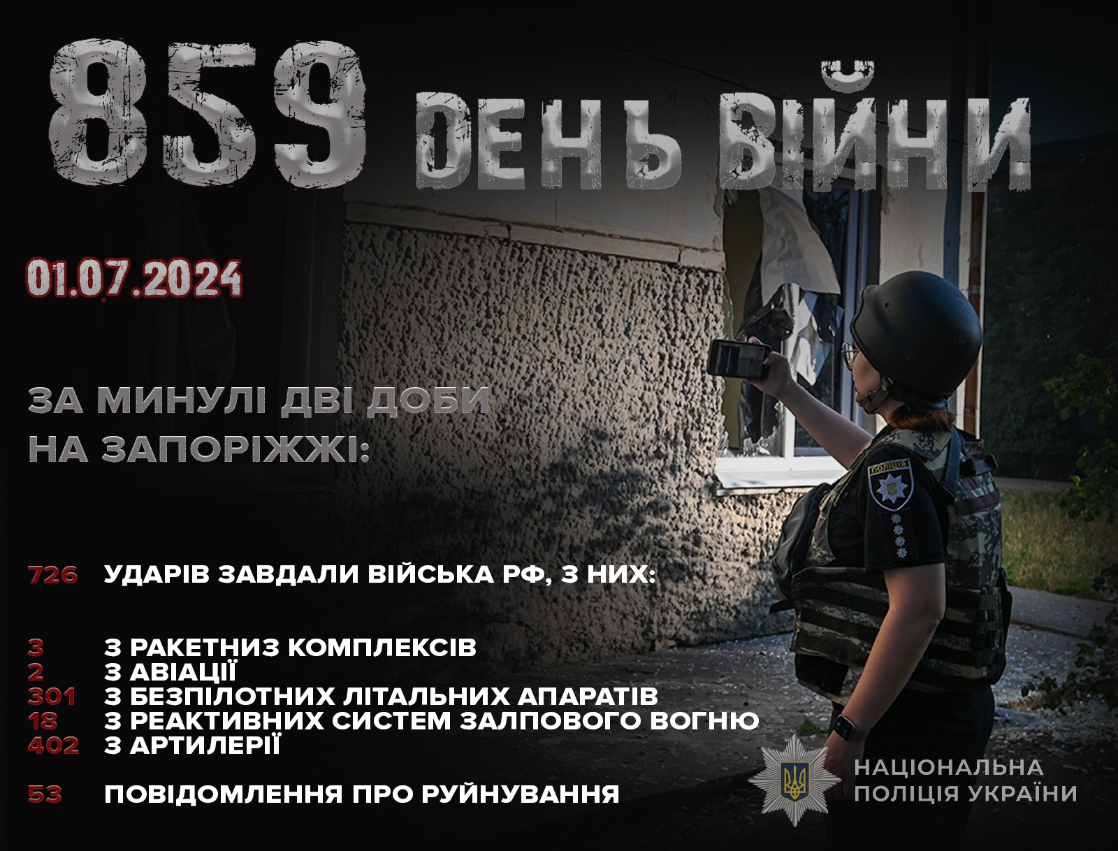За дві доби росіяни здійснили 726 обстрілів по території Запорізької області – наслідки воєнних злочинів задокументували поліцейські
