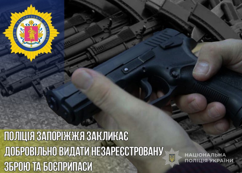 Запорізька поліція закликає громадян повідомити про зберігання та видати незареєстровану зброю