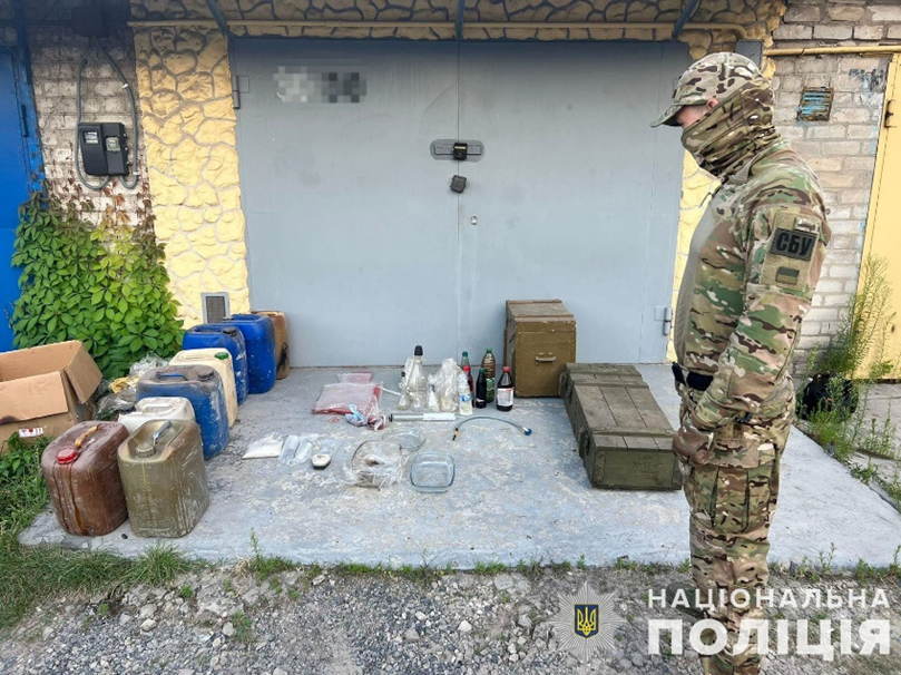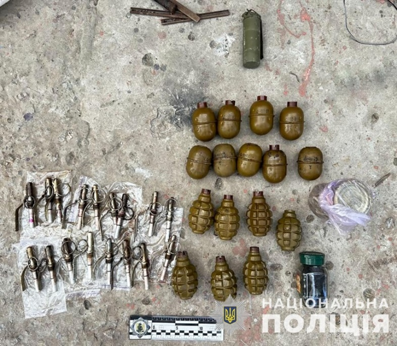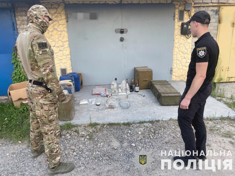 Правоохоронці провели обшуки у двох гаражних приміщеннях, які орендували фігуранти. Вилучили 7 гранат Ф-1, 9 гранат РГД-5, 17 запалів УЗРГМ, 120 набоїв калібру 5,45 мм, банку з порохом, 4 пістолети, а також 60 літрів прекурсорів, зіп-пакети з кристалічною речовиною та різноманітний посуд (колби, контейнери), які використовувались для виготовлення психотропів. Усе вилучене направлено на експертні дослідження.