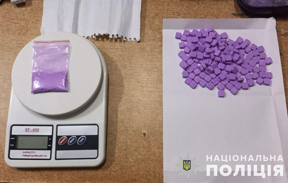 У результаті проведення першочергових слідчих дій у нього було вилучено зіп-пакет із порошком бузкового кольору, понад 100 пігулок, мобільні телефони, банківські картки, електронні ваги.