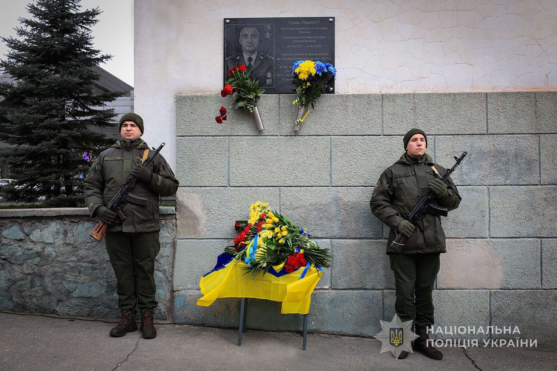 Запорізькі поліцейські долучилися до відкриття меморіальної дошки Герою України Дмитру Апухтіну