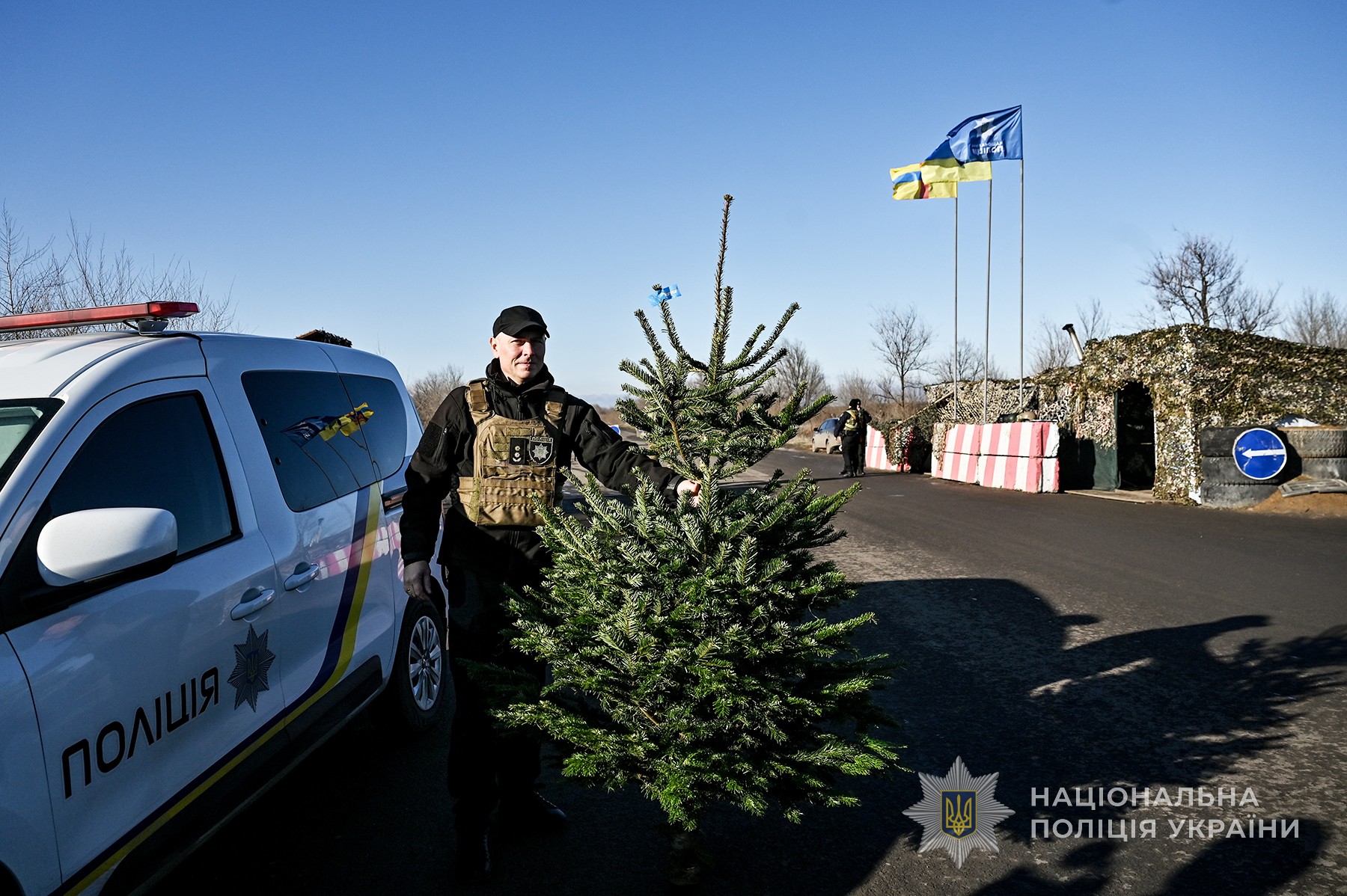 Щоб додати святкового настрою поліцейським, також привезли ялинки. Тепер новорічні дерева прикрашатимуть прифронтові відділення поліції та блокпости, а благодатний вогонь зігріватиме серця правоохоронців та місцевих жителів.