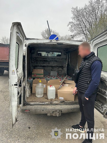 Працівники слідчо-оперативної групи територіального підрозділу поліції, які прибули на місце події, виявили та вилучили із автівки 37 ємностей по 10 літрів та 4 ємкості по 6 літрів із невідомою рідиною з характерним запахом спирту.