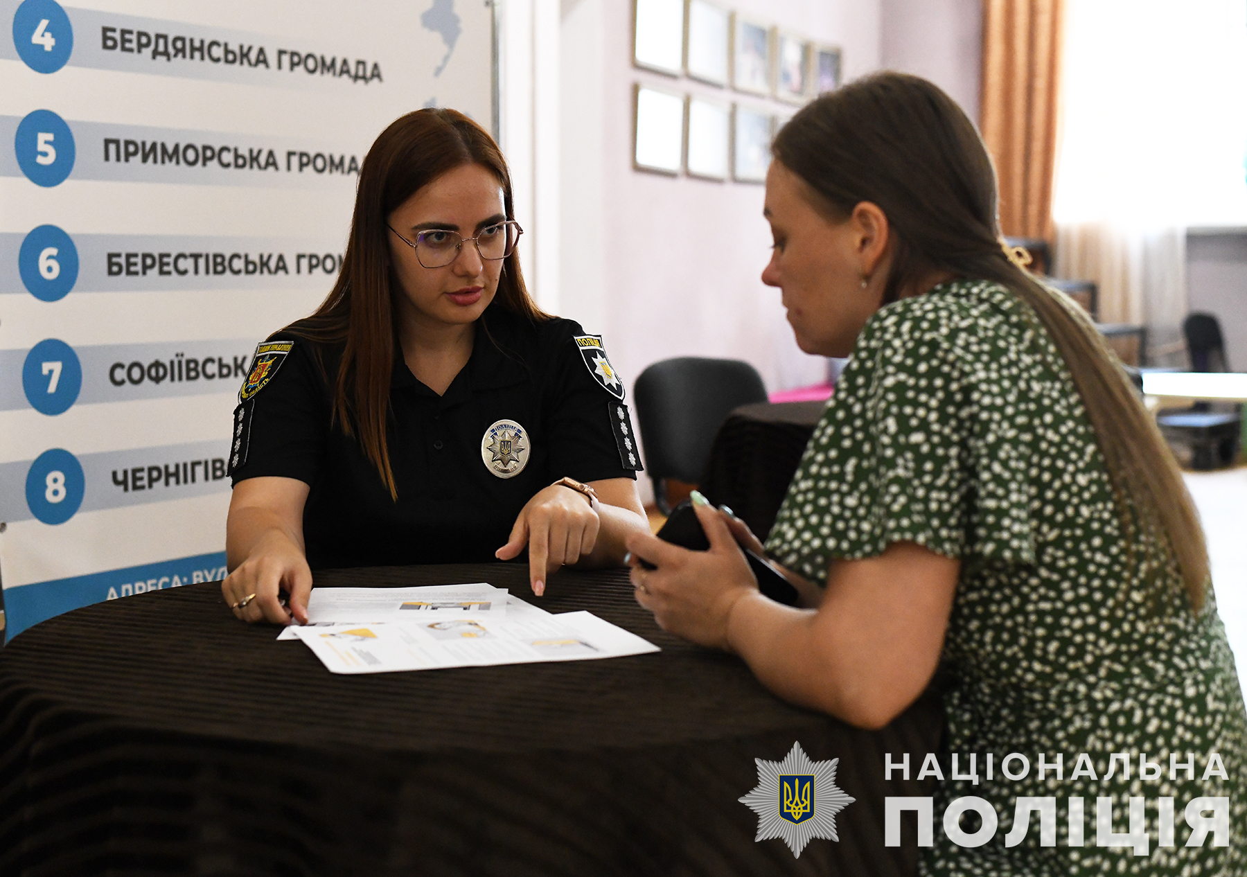 Так, днями інспектор з комунікації Бердянського райвідділу поліції завітала до інформаційно-ресурсного центру Бердянського району. Працівникам та відвідувачам гуманітарного хабу поліцейська розповіла про правила кібербезпеки та як не стати жертвою аферистів.