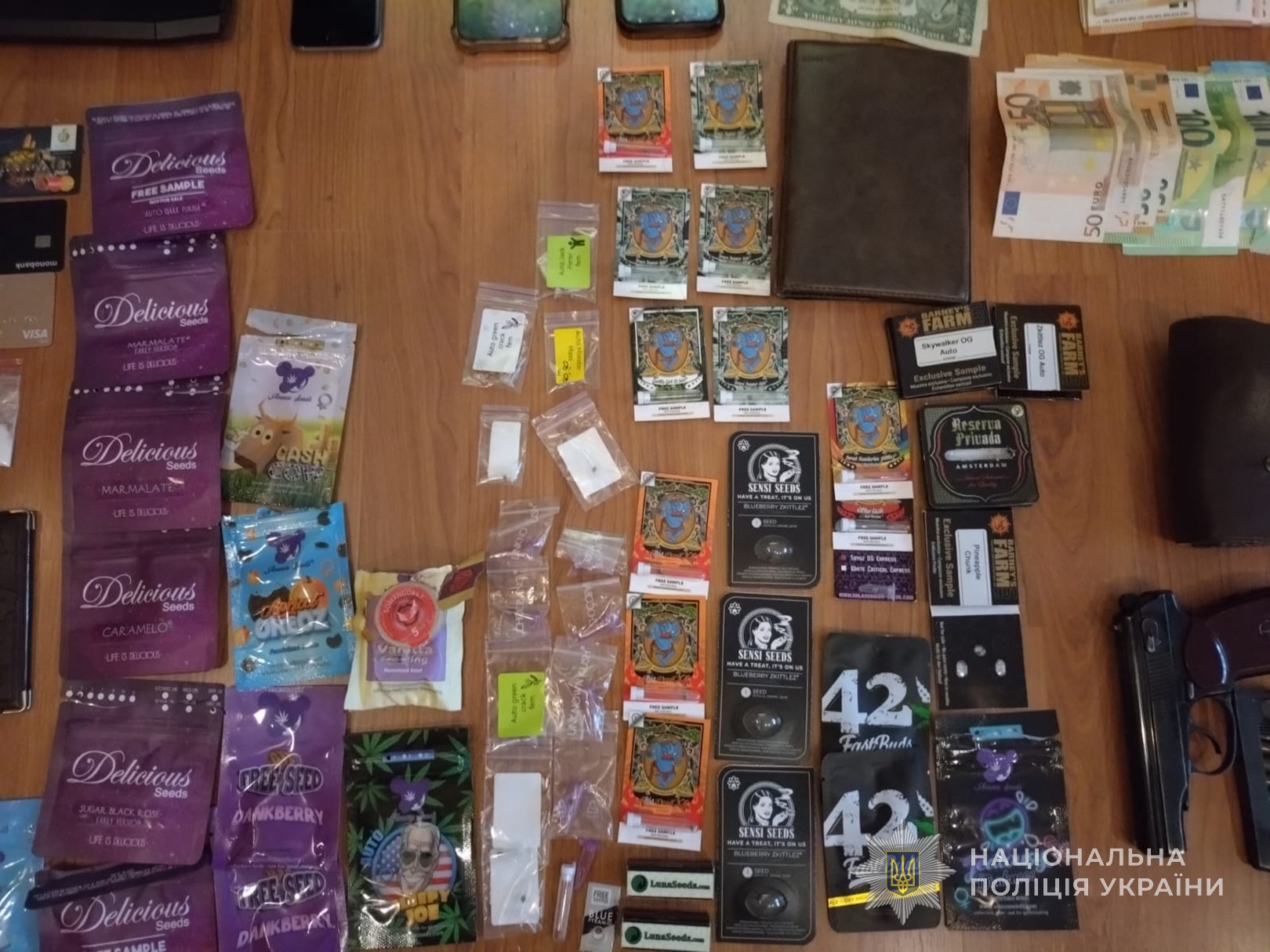 У результаті заходів правоохоронці вилучили 58 кущів канабісу, 4,5 кілограма аналогічної рослини в сухому та подрібненому вигляді, 55 пакунків із насінням, обладнання для вирощування, 5 зіп-пакетів з білою кристалічною речовиною, ваги, банківські картки, мобільні телефони, пристрої для паління, понад 30 набоїв різного калібру, два пістолети Макарова, понад 200 доларів та майже 6000 євро, ймовірно отриманих злочинним шляхом.