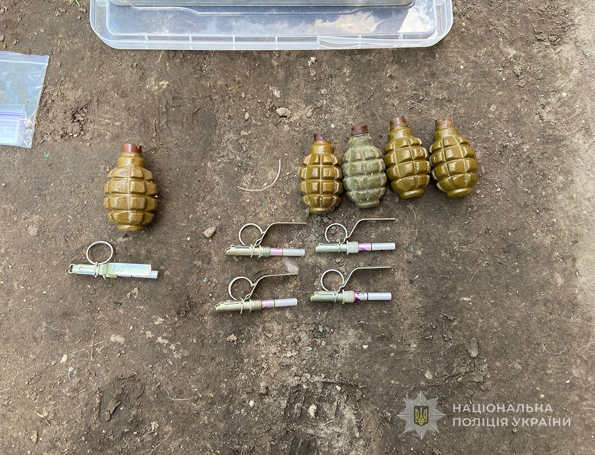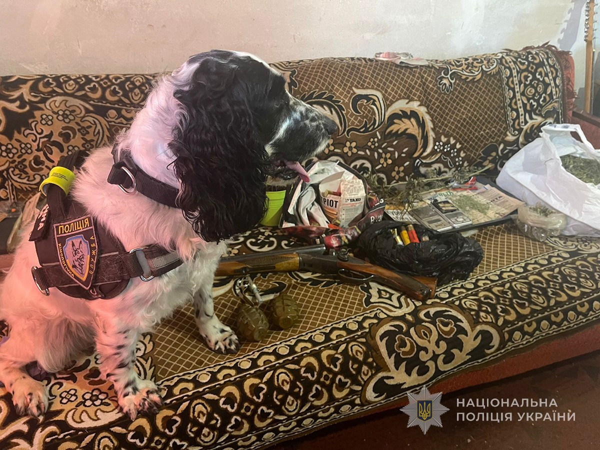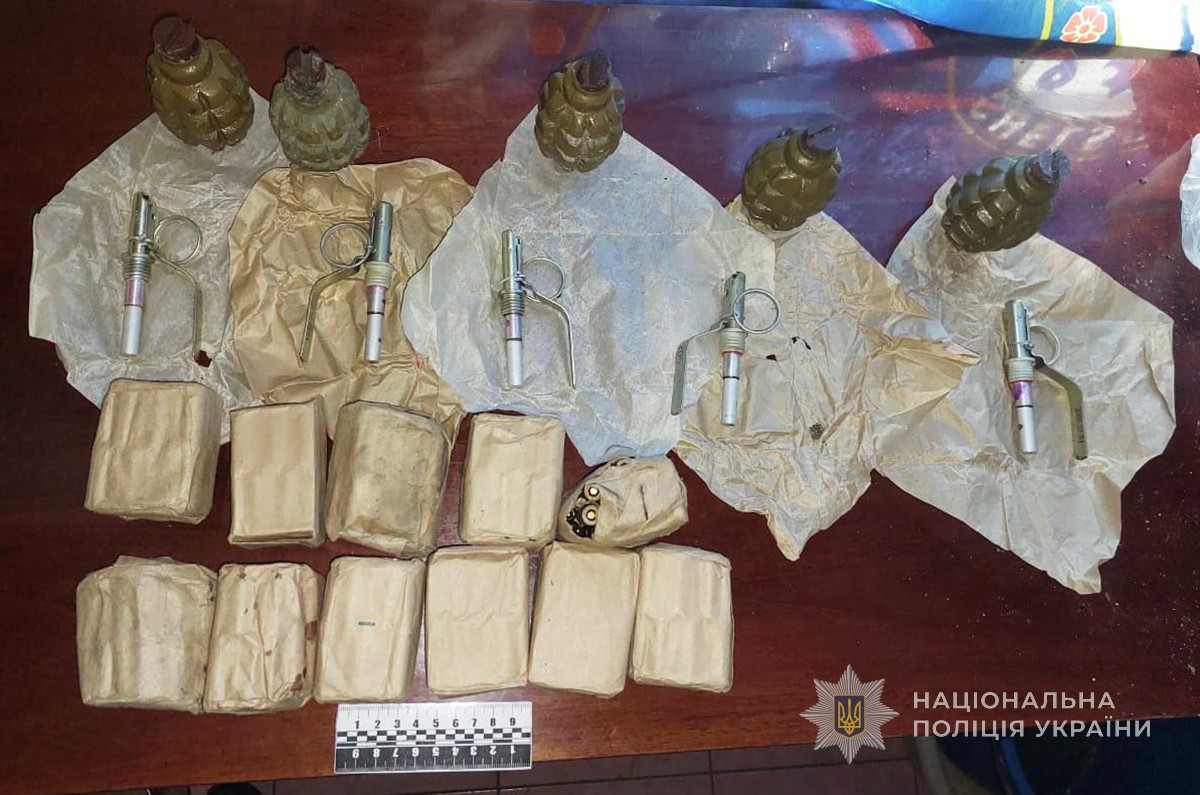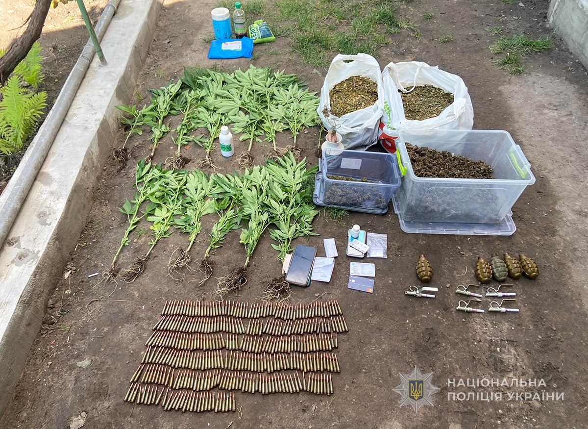 У результаті заходів поліцейські виявили та вилучили 4 кілограми висушених та подрібнених наркорослин, 18 кущів рослин канабісу, понад 40 пігулок наркотичного засобу, 7 корпусів гранат, обріз рушниці, 330 набоїв калібру 5,45, мобільні телефони, банківські картки, ваги, ноутбуки, а також близько 100 000 гривень, здобутих у результаті злочинної діяльності. Для ідентифікації та вилучення боєприпасів були задіяні вибухотехніки.