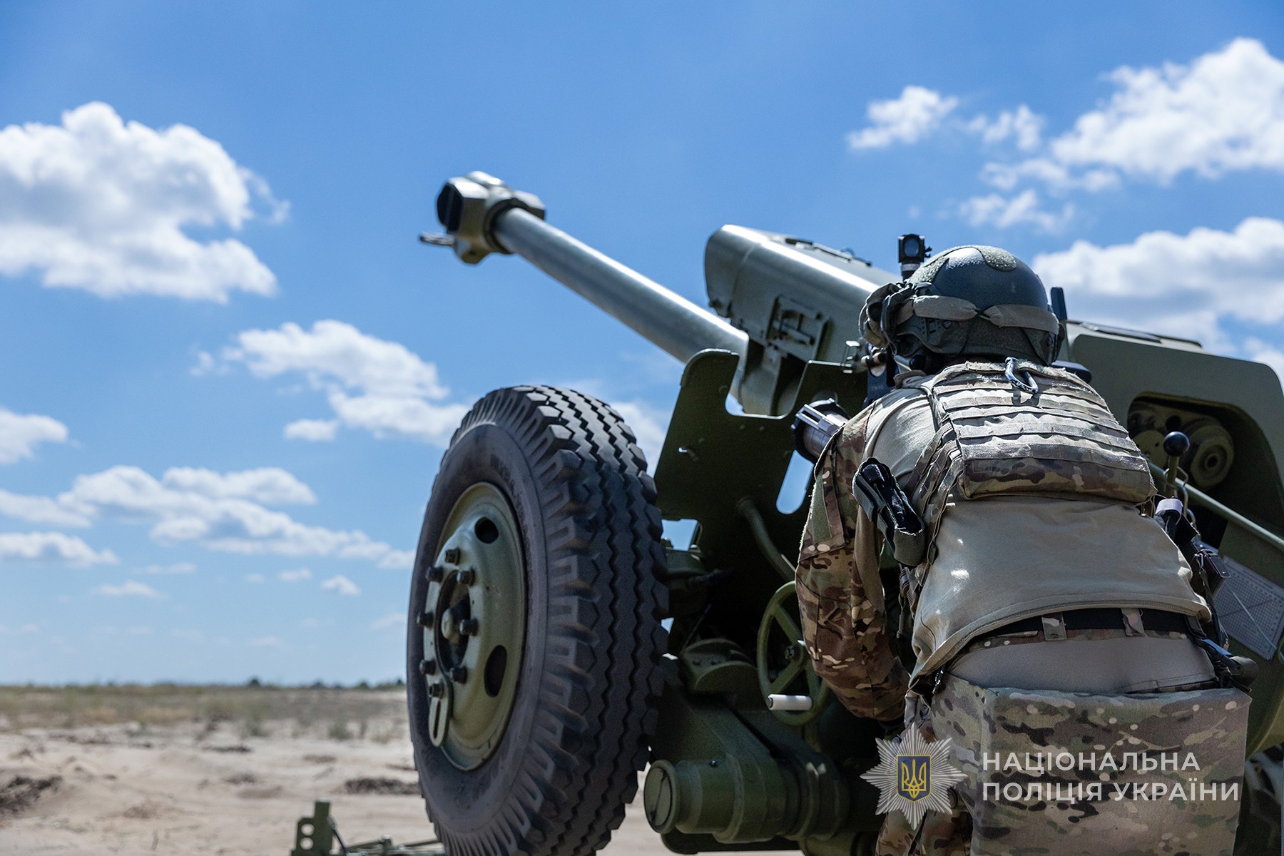 Запорізькі поліцейські стрілецького батальйону опановують артилерійську зброю, щоб влучно цілити по російських загарбниках