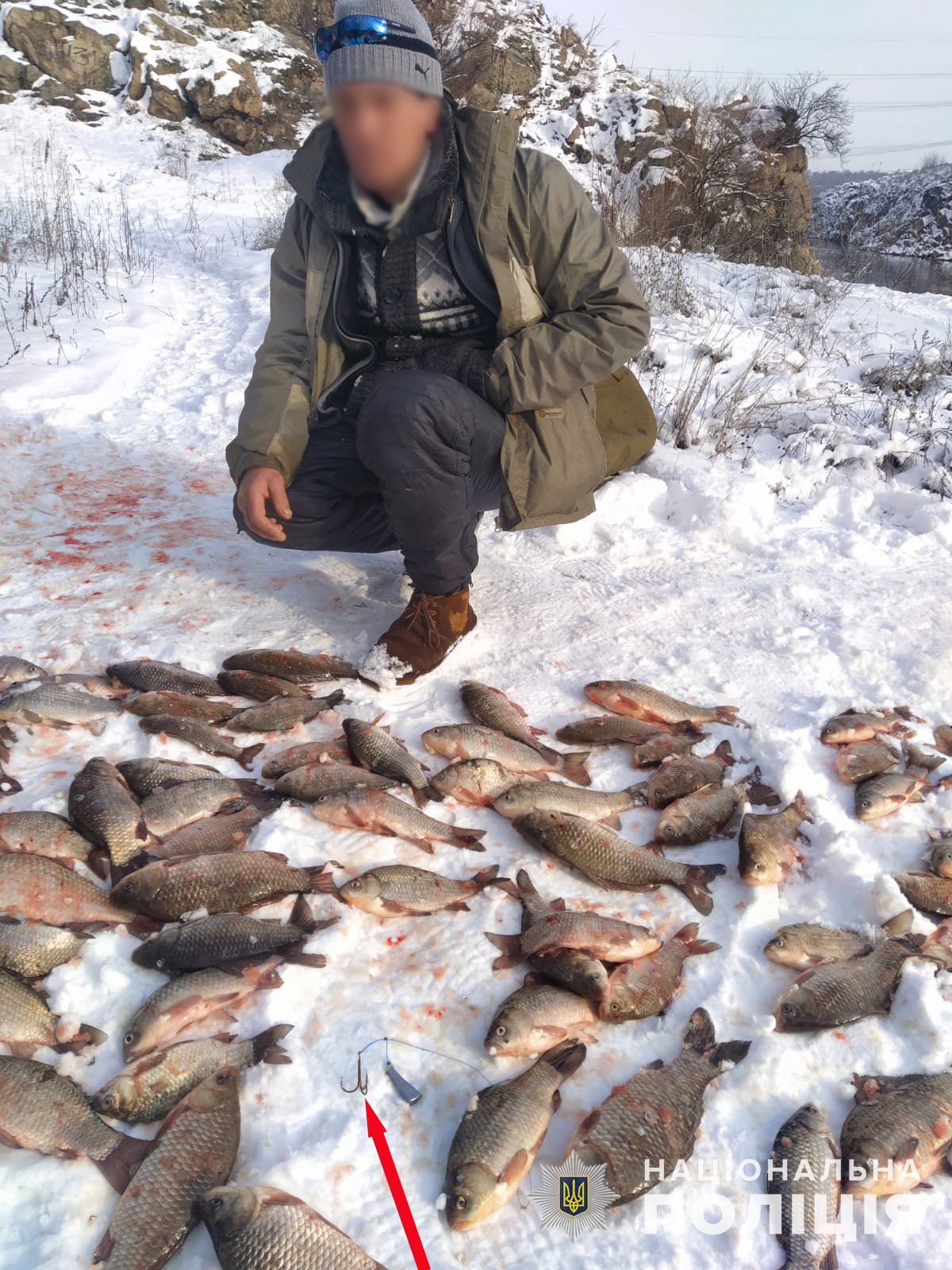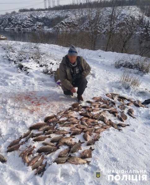 Слідчо-оперативна група Запорізького районного управління поліції, яка прибула на місце події, виявила та вилучила в браконьєра 119 карасів та заборонене знаряддя лову.