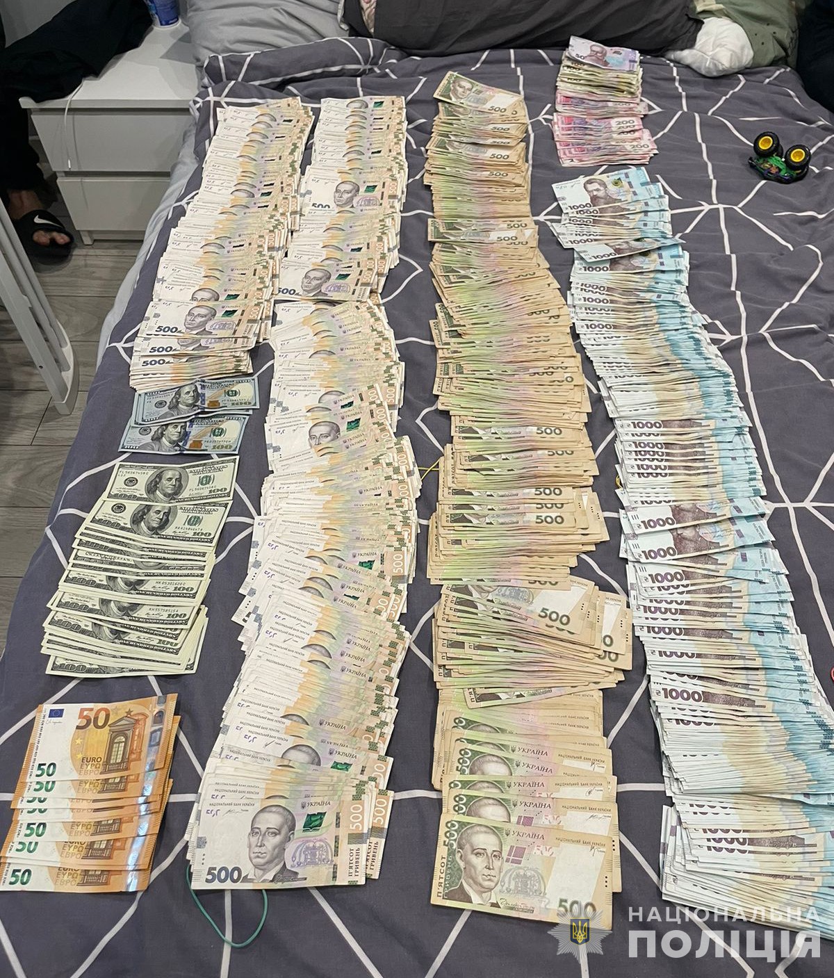 Правоохоронці провели обшуки за місцем мешкання учасника оборудки та осіб, які можуть бути причетні до злочинної діяльності. Вилучили гроші, банківські картки, телефони, "чорнові" записи, авіаобладнання, зброю тощо.