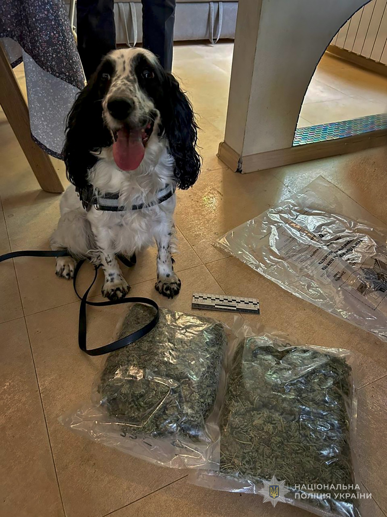 21 серпня правоохоронці із залученням кінологічної пари провели санкціонований обшук за місцем мешкання чоловіка. У результаті заходу виявили та вилучили вісім зіп-пакетів з подрібненою речовиною зеленого кольору з характерним запахом канабісу, загальною вагою понад півтора кілограма, два зіп-пакети з порошкоподібною речовиною білого кольору (попередньо - метамфетамін), два кущі рослин канабісу, майже кілограм висушених гілок тієї ж рослини, електронні ваги та інші речові докази злочинної діяльності.