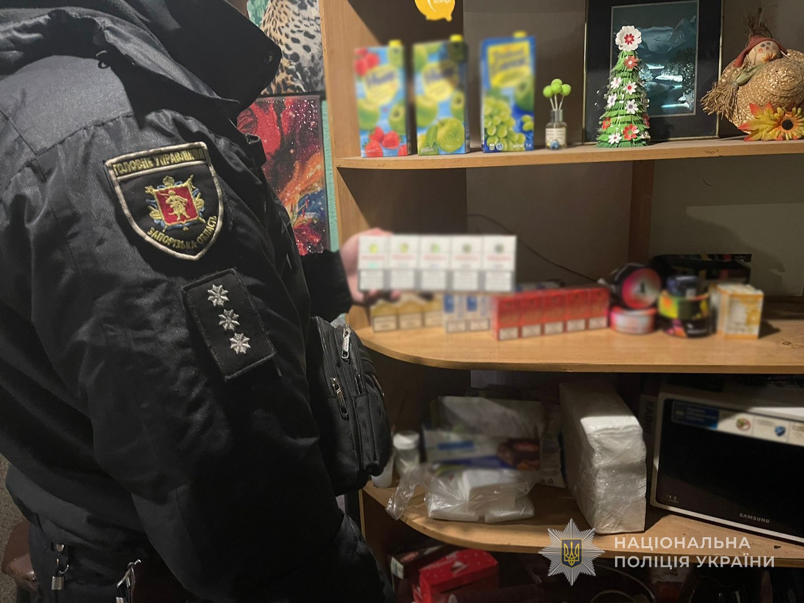 Так, днями, дільничні офіцери поліції відділення №1 (Заводське) Запорізького райуправління разом зі співробітниками управління стратегічних розслідувань ДСР НПУ в Запорізькій області зафіксували факт продажу тютюнових виробів без марок акцизного збору.