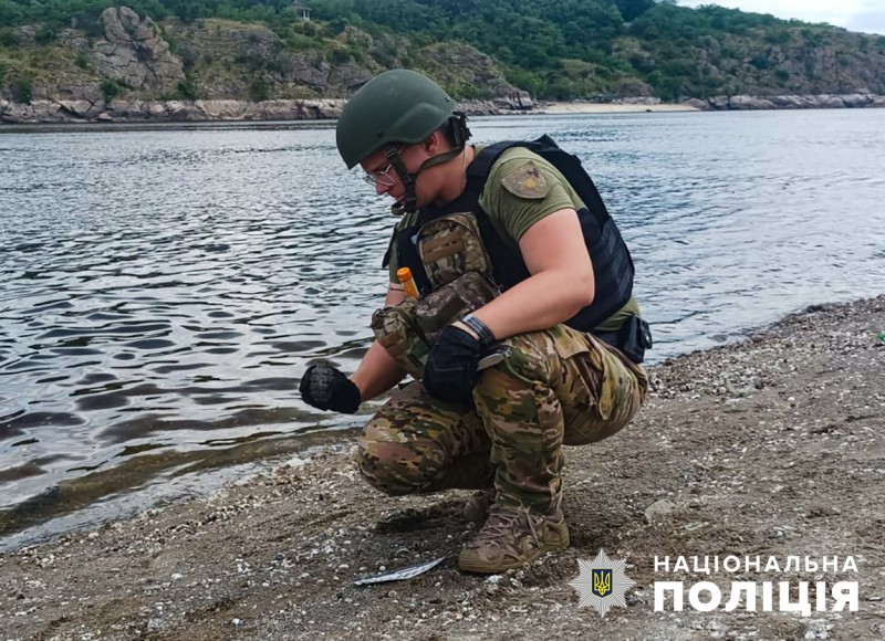 Після підриву російською армією Каховської ГЕС на обмілілих місцях водосховища почастішали випадки вимивання різноманітних «сюрпризів», зокрема таких, які можуть становити небезпеку для громадян. Щоб запобігти нещасним випадкам за участі мирного населення, працівники управління вибухотехнічної служби ГУНП в Запорізькій області проводять активну роботу щодо знешкодження небезпечних предметів, виявлених вздовж берегової лінії річки Дніпро.