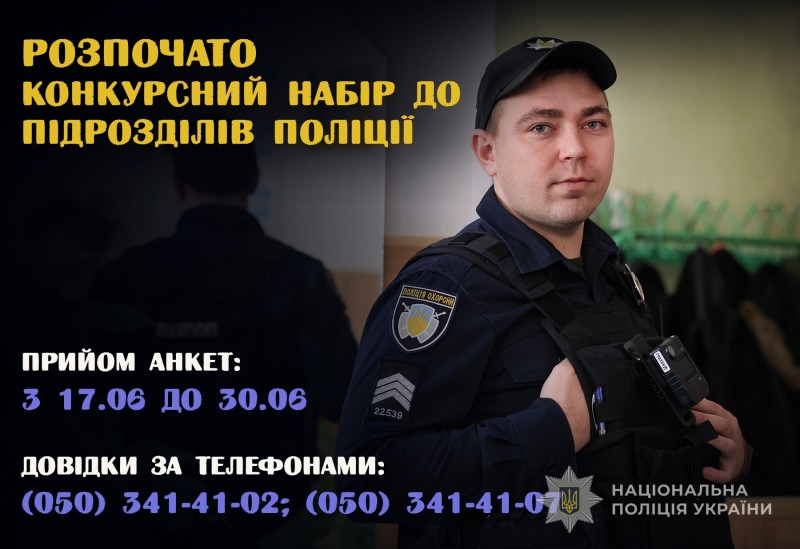 Головним управлінням Національної поліції в Запорізькій області оголошено конкурс на службу в поліції для зайняття 3 вакантних посад.