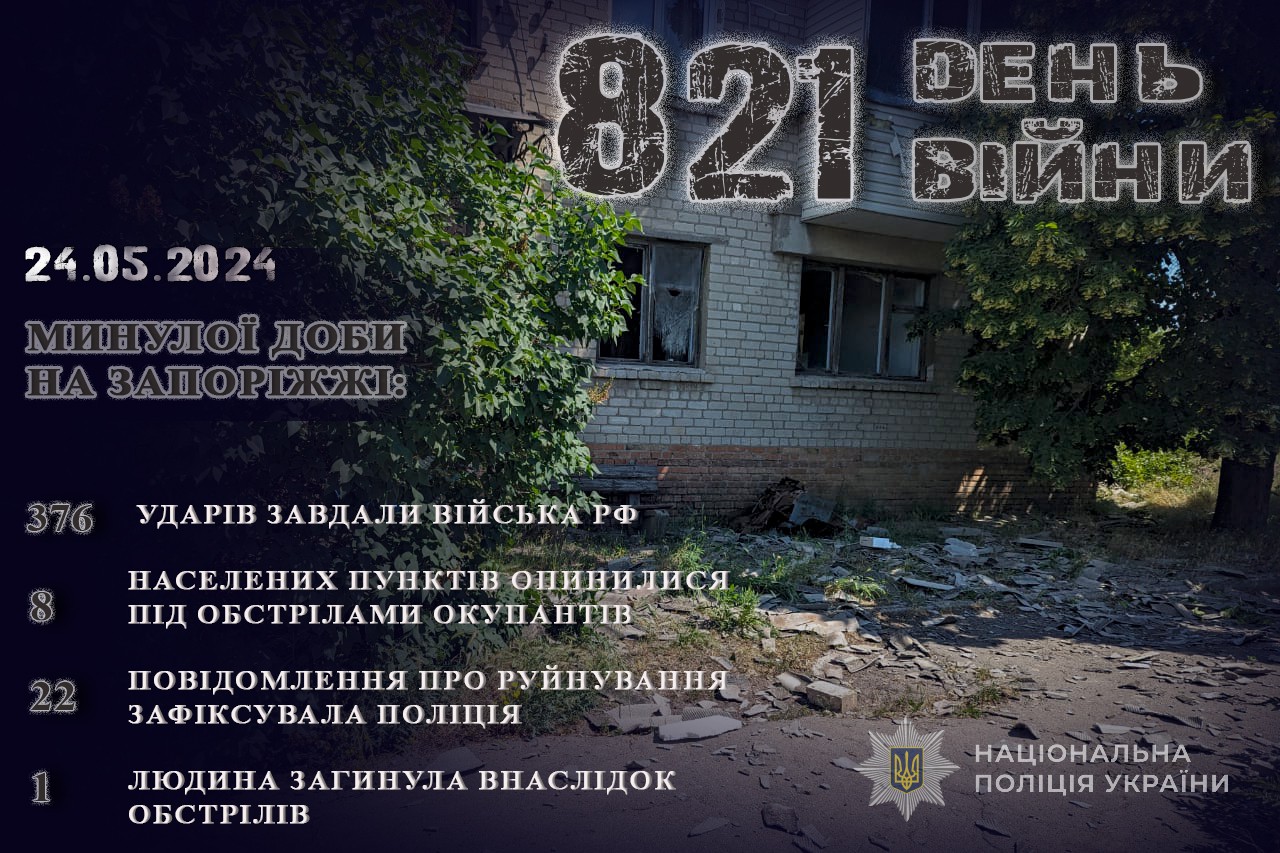 23 травня війська рф обстріляли 8 населених пунктів регіону з різних видів озброєння. Під вогнем загарбників перебували Гуляйполе, Новоандріївка, Малинівка, Роботине, Мала Токмачка, Левадне, Преображенка Пологівського району та Степногірськ Василівського району.