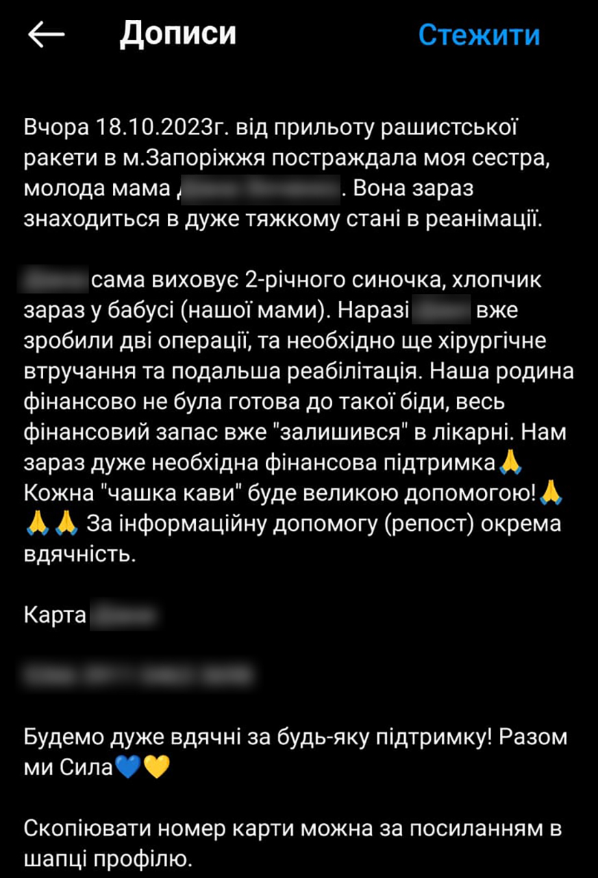 Кожне влучання ворожої ракети у житлові будинки – це страшна трагедія для людей. Вони згуртовуються та допомагають постраждалим хто чим може: продуктами, речами, грошима тощо. А є й такі, що шляхом обману намагаються нажитися на людському горі або співчутті.